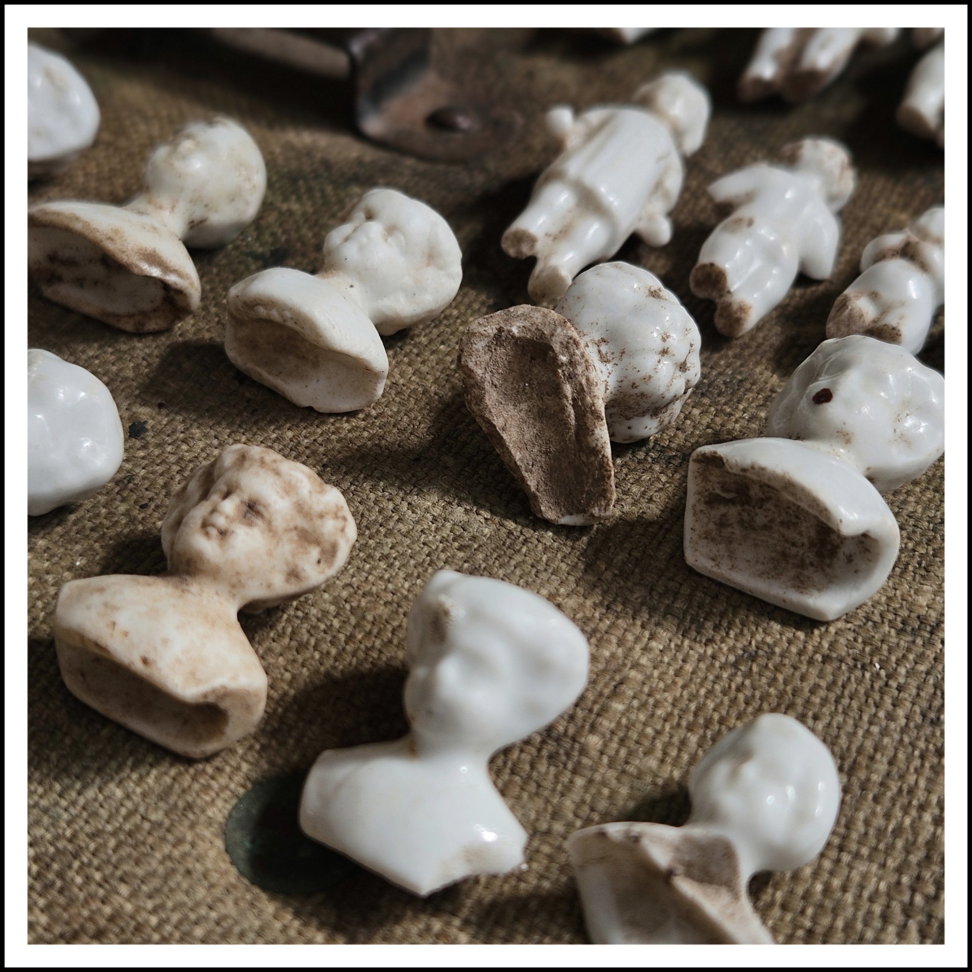 After the rain, these buried little porcelain bodies could be found & collected, shining in the watered soil.