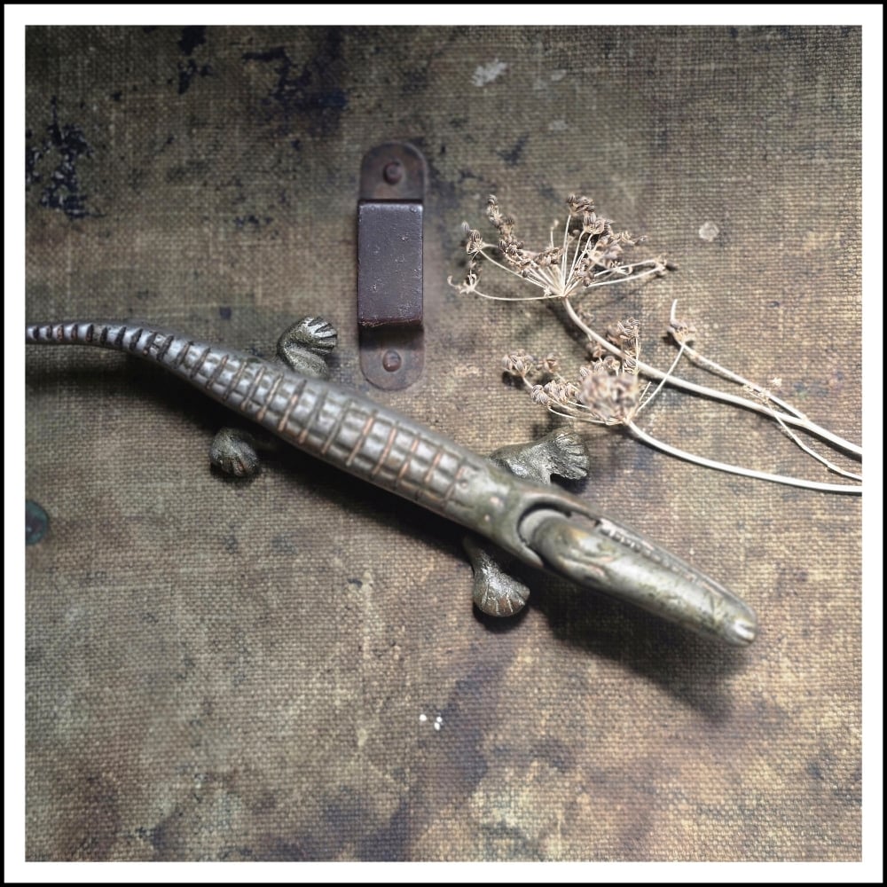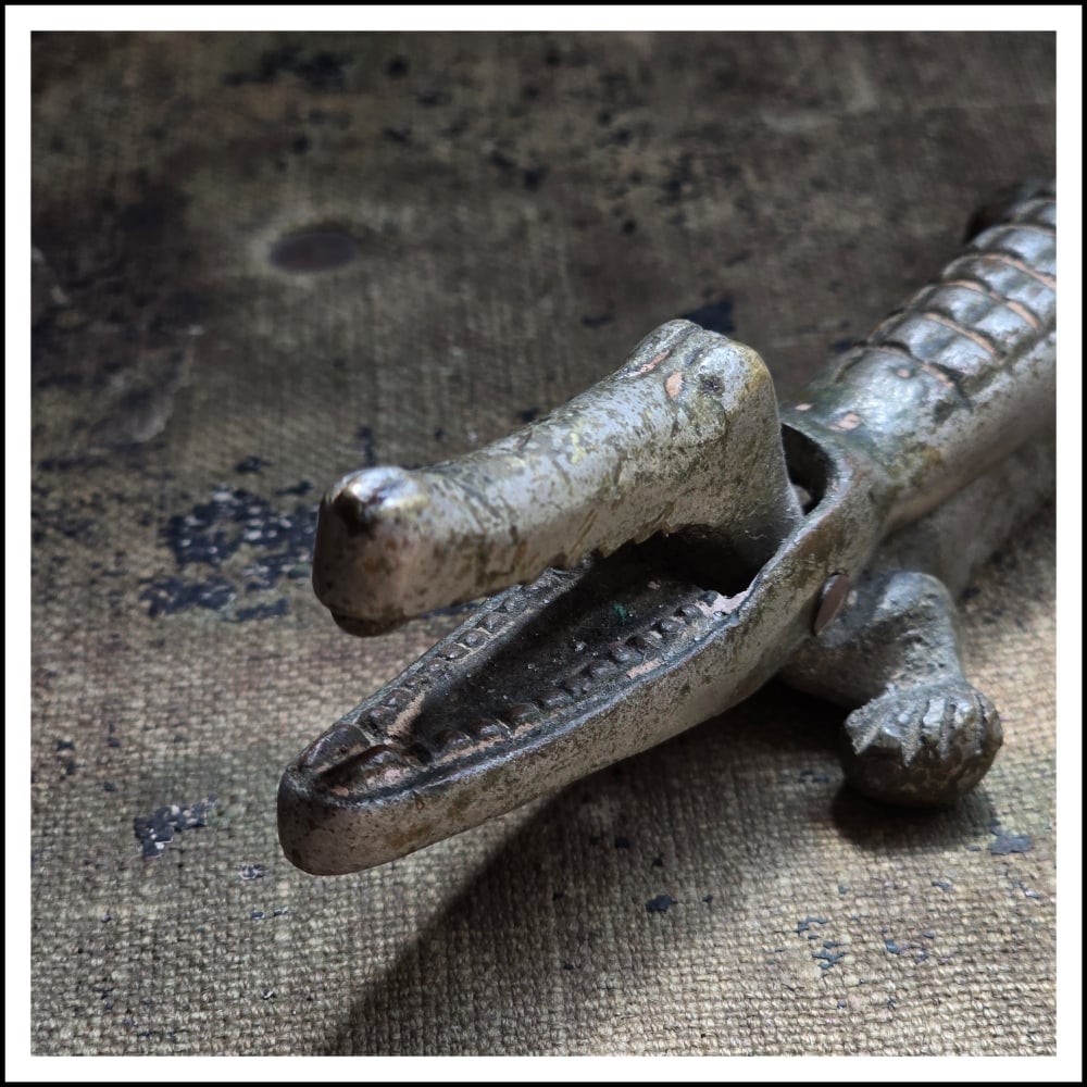 Vintage weighted cast iron crocodile nut cracker (or makes for a perfect paper weight)
