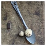 Enamel european serving spoon in great condition, "storm cloud" colour tone