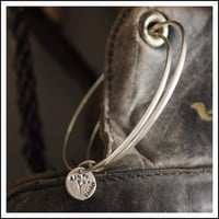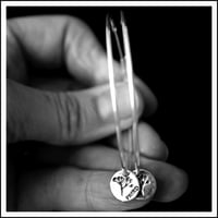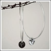 Oversized sterling silver hinged hoops partnered with sterling silver embossed windblown flower disk design, handstamped "Païrd"