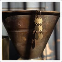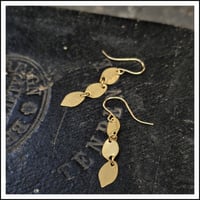 A trio of raw brass leaf charms connected to create lovely light movement, suspended on gold filled earwires